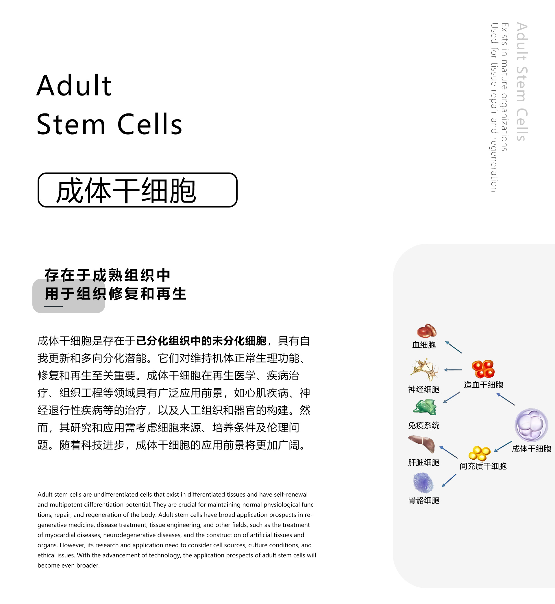 b.  成體干細(xì)胞(Adult Stem Cells):存在于成熟組織中,用于組織修復(fù)和再生。